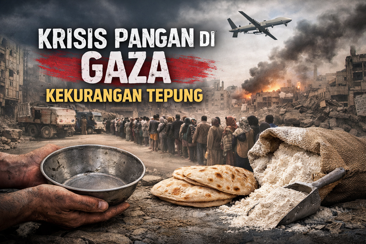 Kondisi ketahanan pangan di Jalur Gaza dilaporkan semakin memburuk. Wilayah tersebut diperkirakan membutuhkan sekitar 450 ton tepung setiap hari, namun pasokan yang tersedia saat ini hanya berkisar 200 ton.