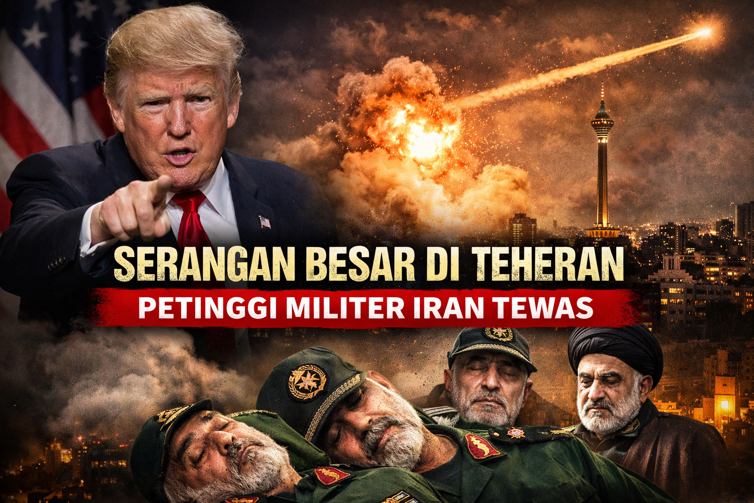 Melalui platform media sosial Truth Social, Trump menyatakan bahwa para petinggi militer tersebut telah “dihabisi” dalam operasi yang ia sebut berskala besar. Ia juga membagikan video berdurasi sekitar satu menit yang diklaim memperlihatkan ledakan di langit Teheran, di tengah meningkatnya ketegangan di kawasan.